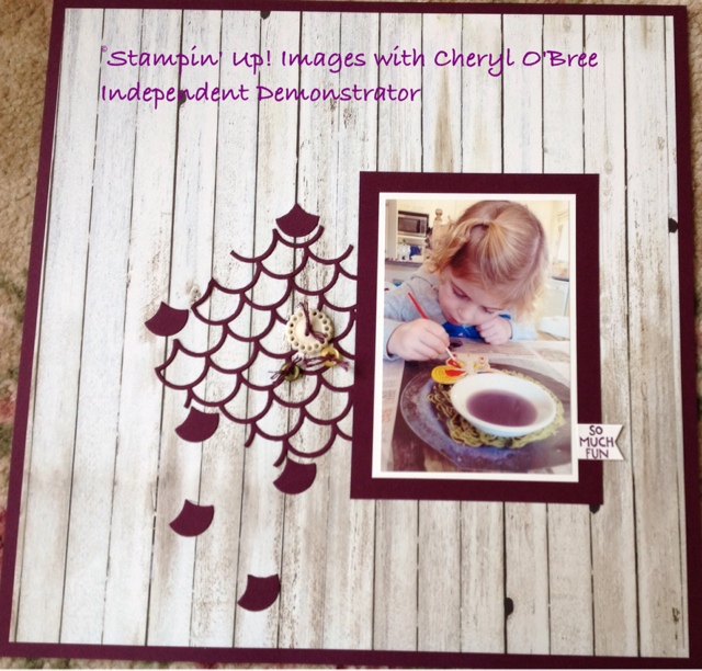 This was a very simply layout, but fun to do. A. Purple of different techniques used, and getting the most out of your stamps. The best part is that all the colours go beautifully, Stampin' Up! Take all the hard work out of matching colours, because they make sure everything co-ordinates. Papers, cardstock, inks, embellishments etc. want to know more, send me an email, I will be happy to help.